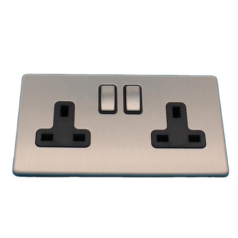 Çift 13A prizler paslanmaz çelik anahtar priz
